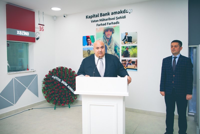 Bankdan Marja-ya daxil olmuş məlumatda bildirilir ki, filial, 44 günlük Vətən Müharibəsində şəhidlik zirvəsinə ucalan, Kapital Bank-ın əməkdaşı olan Fərhad Fərhadlının adını daşıyır.