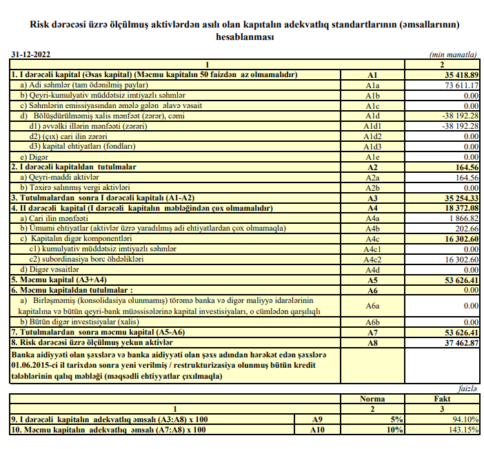 Həmçinin, ötən il aktivlər üzrə ehtiyatların yaradılmasına ayırmalardan 866 min manat azad olub. Filial 2021-ci ildə 3 milyon 733 min manat ehtiyata ayırmışdı.