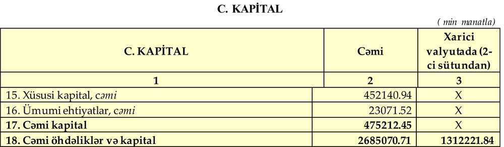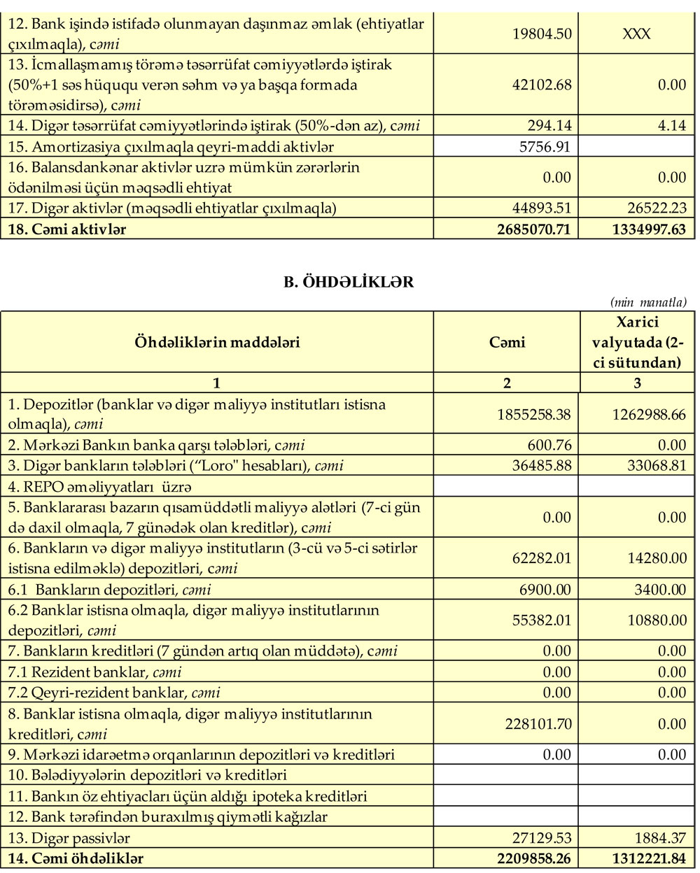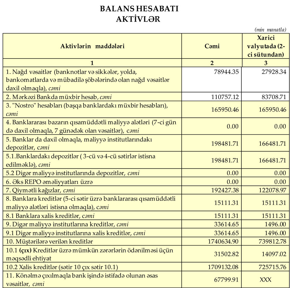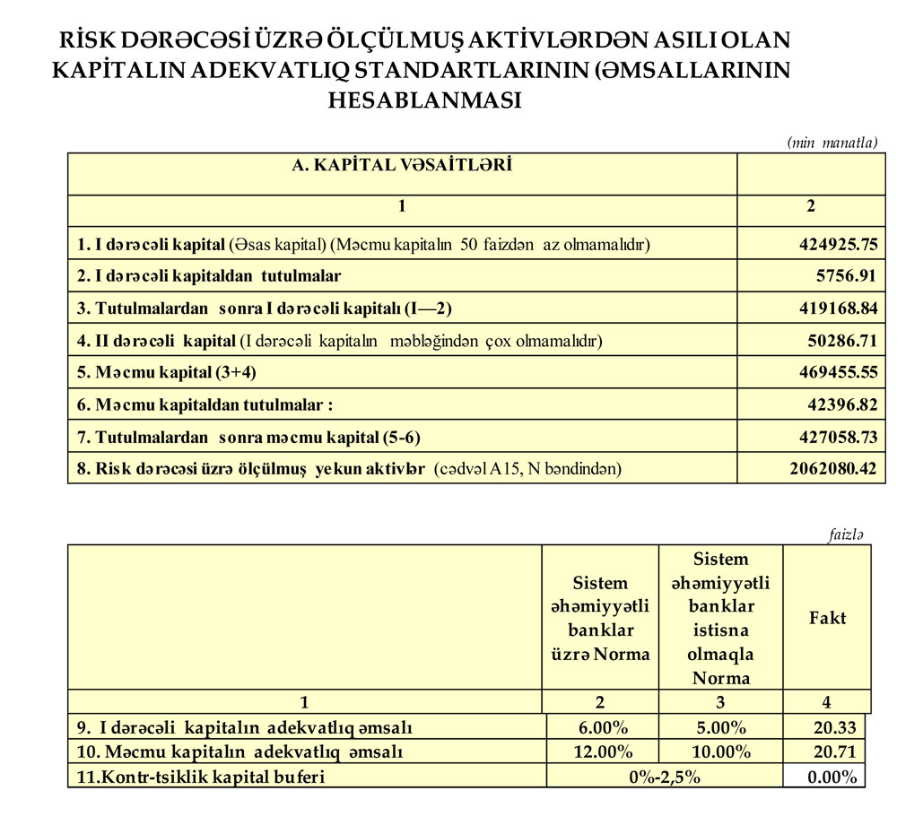 İlin sonuna Bankın xalis mənfəəti 27 milyon 220 min manat təşkil etmişdir.