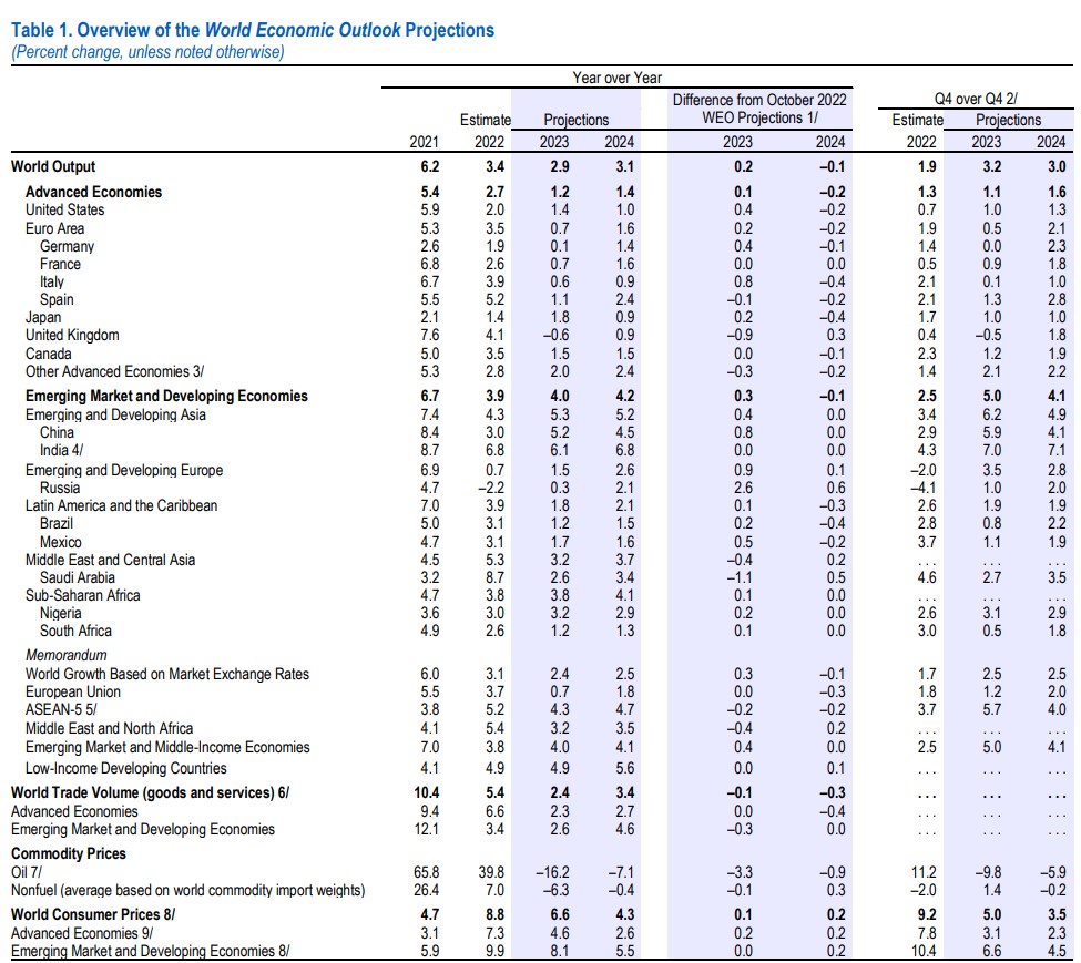 2023-cü il üçün proqnoz 2022-ci ilin Oktyabr ayındakı Dünyanın İqtisadi Mənzərəsi hesabatında proqnozlaşdırılandan 0,2 faiz bəndi yüksəkdir, lakin tarixi orta göstəricidən (2000-20119-cu illərdə orta hesabla 3,8 faiz) aşağıdır.