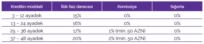 Qeyd edək ki, 24 ayadək verilən kreditlər üzrə komissiya nəzərdə tutulmamışdır.